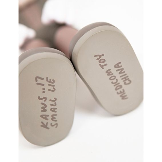 The Small Lie by KAWS x Medicom Toys is packed in a plastic blister and sealed in a plastic bag. The Small Lie figure stand 11"tall (28 cm) and is made by Medicom Toys in Japan. Read more