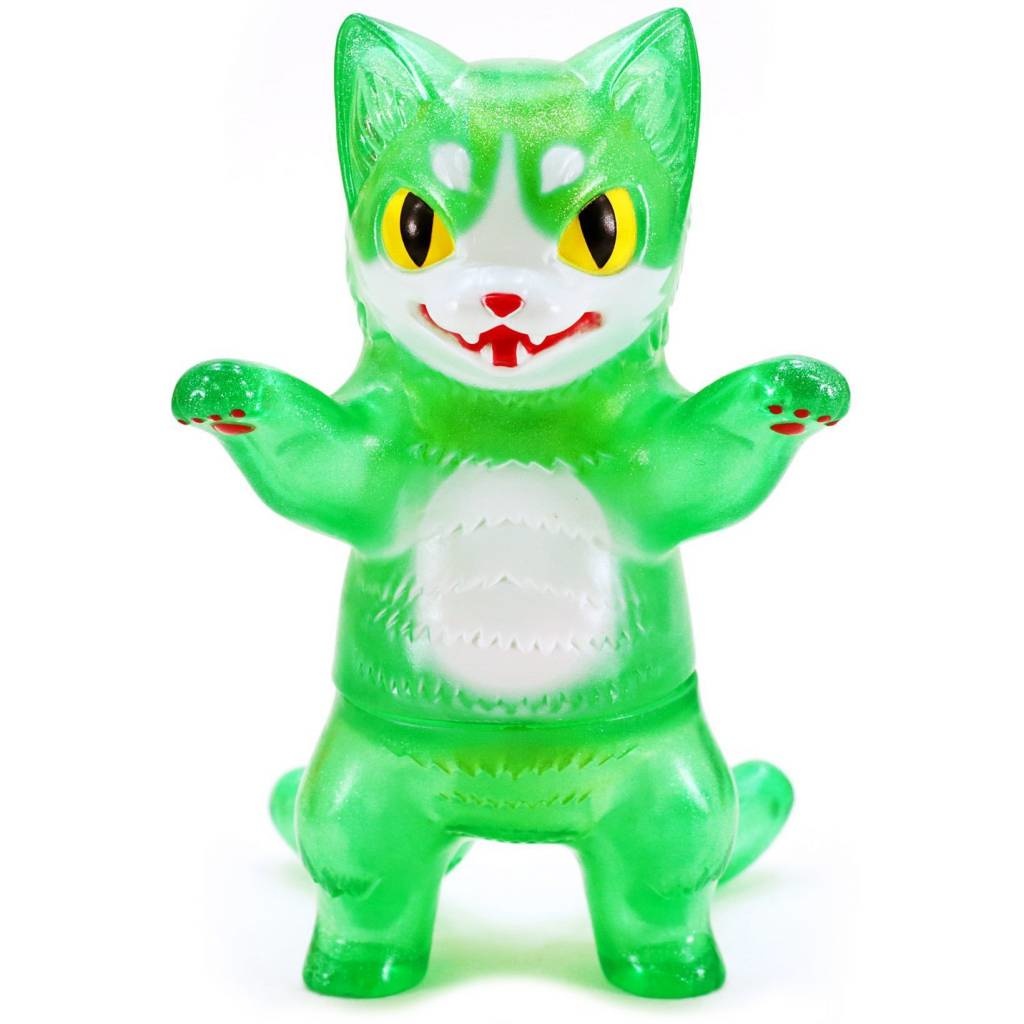 Japanese artist Konatsu's Negora character is part kitty cat and part monster....Meeeee-ow! This Mini Cream Soda version features sparkly green glitter vinyl and pastel paint. Packaged in a bag and header card. Yummy! (Do not eat)